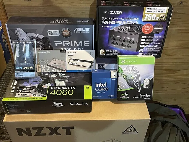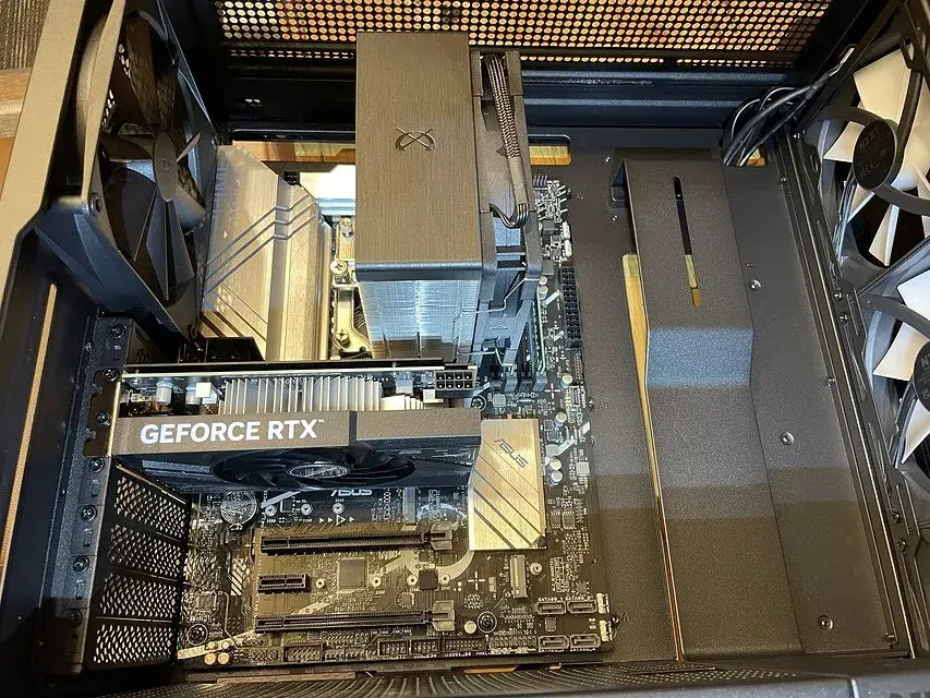 ケースを寝せてマザーボードを挿入しGPUを取り付けます。
